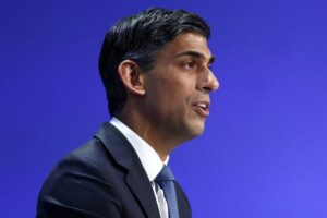 British Prime Minister Rishi Sunak delivers a speech at the opening session on the first day of the Ukraine Recovery Conference in London, Britain June 21, 2023. Henry Nicholls/Pool via REUTERS