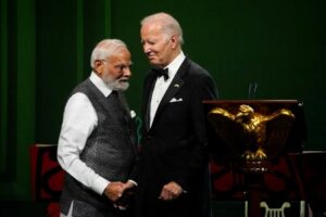 U.S. President Joe Biden and India’s Prime Minister Narendra Modi shake hands during an official state dinner at the White House in Washington, U.S., June 22, 2023. REUTERS/Elizabeth Frantz