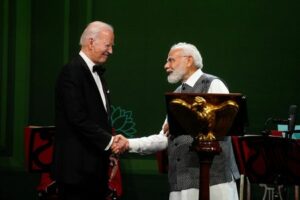 U.S. President Joe Biden and India’s Prime Minister Narendra Modi shake hands during an official state dinner at the White House in Washington, U.S., June 22, 2023. REUTERS/Elizabeth Frantz