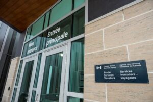 FILE PHOTO: The main entrance to the Canadian Border Services Agency border crossing at the Thousand Islands Bridge after it was announced that the border would close to “non-essential traffic” to combat the spread of novel coronavirus disease (COVID-19) at the U.S.-Canada border crossing at the Thousand Islands Bridge in Lansdowne, Ontario, Canada March 19, 2020. REUTERS/Alex Filipe/ File Photo