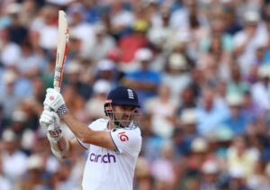 FILE PHOTO: Cricket – Ashes – First Test – England v Australia – Edgbaston Cricket Ground, Birmingham, Britain – June 19, 2023 England’s James Anderson in action as he plays a shot off the bowling of Australia’s Scott Boland Action Images via Reuters/Paul Childs/File Photo