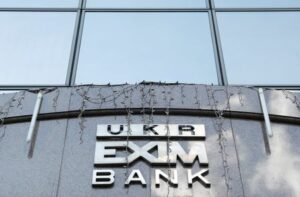 FILE PHOTO: The logo of Ukreximbank is seen at its headquarters in Kyiv, Ukraine October 6, 2021. REUTERS/Valentyn Ogirenko/File Photo