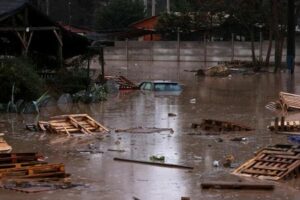 Foto del viernes de un auto en una zona inundada