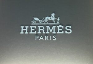 FILE PHOTO: A logo of Hermes brand is seen during the Watches and Wonders fair in Geneva, Switzerland March 27, 2023. REUTERS/Denis Balibouse