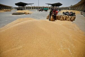 FILE PHOTO: Workers fill sacks with wheat at the market yard of the Agriculture Product Marketing Committee (APMC) on the outskirts of Ahmedabad, India, May 16, 2022. REUTERS/Amit Dave/File Photo