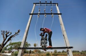A man installs an electric transformer outside a wheat field on the outskirts of Ahmedabad, India, February 17, 2017. REUTERS/Amit Dave/File photo