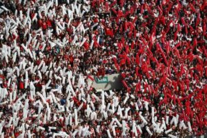 Foto de archivo de aficionados de River Plate. Estadio Monumental, Buenos Aires, Argentina. 7 de mayo de 2023.