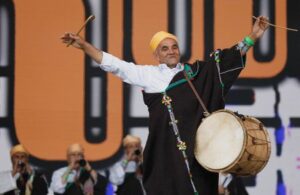 The Master Musicians of Joujouka perform at the Glastonbury Festival site in Somerset, Britain, June 23, 2023. REUTERS/Jason Cairnduff