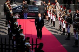 Chinese Premier Li Qiang arrives for the closing session of the New Global Financial Pact Summit, Friday, June 23, 2023 in Paris, France. The aim of the two-day climate and finance summit was to set up concrete measures to help poor and developing countries whose predicaments have been worsened by the devastating effects of the COVID-19 pandemic and the war in Ukraine better tackle poverty and climate change. Lewis Joly/Pool via REUTERS