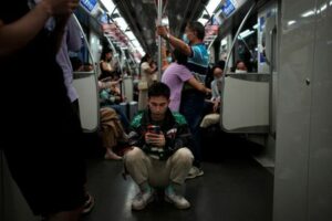 VJ Kawakubo, 30, an IT programmer, checks his phone on a subway train in Shanghai, China, June 3, 2023. VJ was one of the city’s earliest adopters of voguing, drawn to a dance class seven years ago. Although the performance aspect of voguing is important, he said, its ability to bring people together gave the scene deeper meaning. “If you are just dancing by yourself, there is no meaning in that,” said VJ “The most important thing for me is that it’s a comfortable environment.” REUTERS/Aly Song