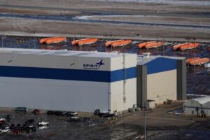 Airplane fuselages bound for Boeing’s 737 Max production facility sit in storage behind Spirit AeroSystems Holdings Inc headquarters, in Wichita, Kansas, U.S. December 17, 2019. REUTERS/Nick Oxford