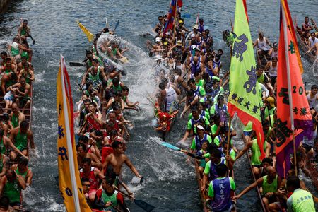 HONG KONG (Reuters) – Thousands of paddlers descended on Hong Kong on Saturday to take part in the financial hub’s International Dragon Boat competition, held for the first time in more than 4 years after they were halted due to anti-government protests and COVID-19.