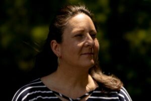 Shannon Harris, a parent in the Central Bucks School District, poses for a portrait in Doylestown, Pennsylvania, U.S., June 5, 2023. REUTERS/Hannah Beier