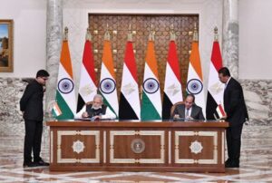 Egypt’s President Abdel Fattah El-Sisi and Indian Prime Minister Narendra Modi take part in an agreement signing ceremony, at the Ittihadiya presidential palace in Cairo, Egypt June 25, 2023. The Egyptian Presidency/Handout via REUTERS