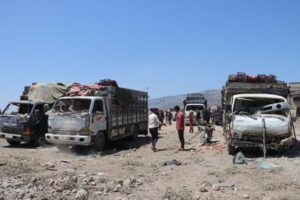 A general view of the aftermath of a Russian air strike at Jisr al-Shughour, Syria June 25, 2023. White Helmets/Handout via REUTERS