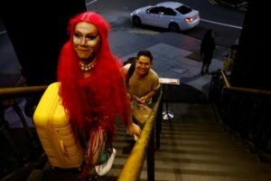 Drag performer Yeo Sam Jo, 35, whose stage name is JoJo Sam Clair, arrives for a performance at a local club in Singapore June 15, 2023. REUTERS/Edgar Su