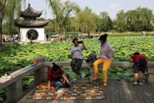FOTO DE ARCHIVO: Personas y niños disfrutan junto al lago en un parque durante el Festival del Barco del Dragón, tras el brote de la enfermedad por coronavirus (COVID-19), en Pekín, China. 4 de junio, 2022. REUTERS/Tingshu Wang/Archivo