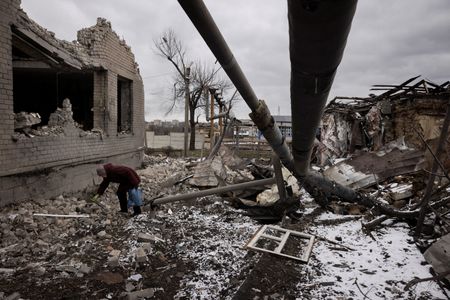 MOSCOW (Reuters) – The trees are splintered, the houses wrecked, the surviving civilians live in basements, NATO ammunition has been abandoned – this is the picture shown by footage released by Russia from the ruins of the Ukrainian town of Avdiivka.