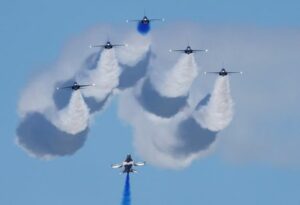 South Korean Air Force’s Black Eagles aerobatic team performs in their T-50’s during an aerial display at the Singapore Airshow at Changi Exhibition Centre, in Singapore, February 20, 2024. REUTERS/Edgar Su