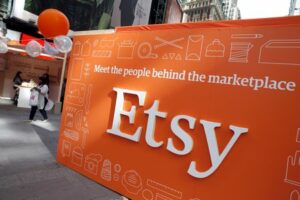 A sign advertising the online seller Etsy Inc. is seen outside the Nasdaq market site in Times Square following Etsy’s initial public offering (IPO) on the Nasdaq in New York April 16, 2015. REUTERS/Mike Segar/File Photo