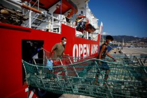 FILE PHOTO: Migrants on board Open Arms rescue boat arrive