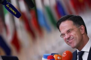 ARCHIV: Der niederländische Ministerpräsident Mark Rutte spricht während eines Gipfeltreffens der Europäischen Union in Brüssel, Belgien, am 1. Februar 2024, zur Presse.