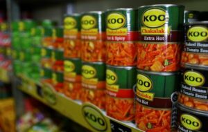 FILE PHOTO: One of South Africa’s Tiger Brands products, KOO canned vegetable products, are displayed on a shelf at a spaza shop in Thembisa, on the East Rand, outside Johannesburg in South Africa, August 2, 2023. REUTERS/Siphiwe Sibeko/File Photo