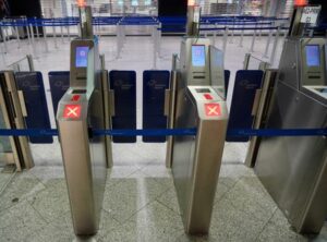 Control gates are closed on the day of a strike by aviation security workers called by German trade union Verdi, in Frankfurt, Germany, February 1, 2024. REUTERS/Timm Reichert