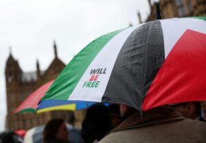 Campaigners queue to lobby MPs in Parliament ahead of a debate to hold a vote for a ceasefire in Gaza, amid the ongoing conflict between Israel and the Palestinian Islamist group Hamas, in London, Britain, February 21, 2024. REUTERS/Isabel Infantes
