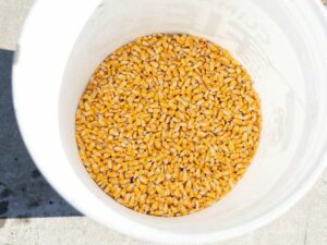 Corn out of one of the bins at farmer Dan Henebry’s farm is pictured, in Buffalo, Illinois, U.S., February 18, 2024.REUTERS/Lawrence Bryant/File Photo