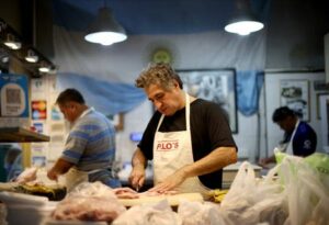FILE PHOTO: A butcher chops chicken in a local market, in Buenos Aires, Argentina January 5, 2024. REUTERS/Agustin Marcarian/File Photo
