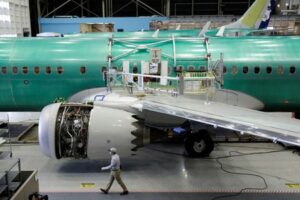 FILE PHOTO: A worker walks past Boeing’s new 737 MAX-9 under construction at their production facility in Renton, Washington, U.S., February 13, 2017. REUTERS/Jason Redmond/File Photo