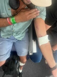 A passenger shows his injuries after an incident on a LATAM Airlines Boeing 787, in Auckland, New Zealand, March 11, 2024, in this picture obtained from social media. Brian Adam Jokat/via REUTERS