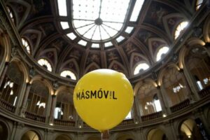 FOTO DE ARCHIVO: Un globo con el logotipo de MásMóvil en el interior de la Bolsa de Madrid, España, el 14 de julio de 2017. REUTERS/Juan Medina