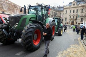 FILE PHOTO: A driver smokes as he walks past his tractor parked in front of a government office in Prague, Czech Republic, March 7, 2024. REUTERS/Eva Korinkova/File Photo