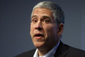 FILE PHOTO: Marc Nachmann, Global Head of Asset and Wealth Management at Goldman Sachs, speaks during the Goldman Sachs Investor Day at Goldman Sachs Headquarters in New York City, U.S., February 28, 2023. REUTERS/Brendan McDermid/File Photo
