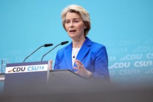FOTO DE ARCHIVO. La presidenta de la Comisión Europea, Ursula von der Leyen, habla en rueda de prensa tras una reunión de la dirección del partido Unión Demócrata Cristiana (CDU) en Berlín, Alemania. 11 de marzo de 2024. REUTERS/Liesa Johannssen