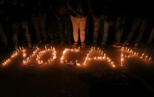 FOTO ARCHIVO: Unas velas deletrean “No CAA” durante una protesta