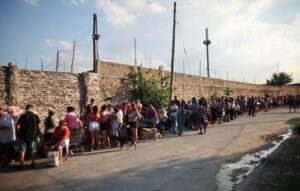 Personas humildes aguardan en fila para recibir alimentos fuera de la ONG Sal de la Tierra, en Villa Fiorito, un barrio de clase baja en los suburbios de Buenos Aires., Argentina February 27, 2024. REUTERS/Agustin Marcarian