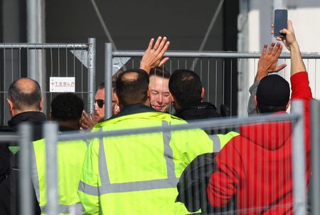BERLÍN, 13 mar (Reuters) – Elon Musk llegó el miércoles a la gigafactoría europea de Tesla en Gruenheide (Alemania), donde se reanudaron las operaciones después de que la semana pasada el incendio intencional de un poste eléctrico cercano provocó un costoso apagón que detuvo la producción en la planta.