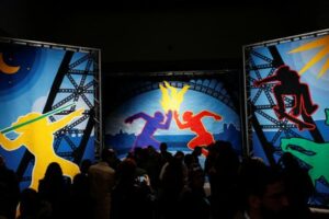 The Olympic tapestry designed by French-Iranian artist Marjane Satrapi is displayed in Paris, France, March 12, 2024. REUTERS/Benoit Tessier/File Photo