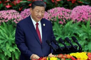 Chinese President Xi Jinping delivers his keynote speech at the opening ceremony of the ninth Forum on China-Africa Cooperation (FOCAC) Summit, at the Great Hall of the People in Beijing, China September 5, 2024. REUTERS/Florence Lo