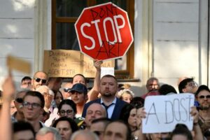 FILE PHOTO: Demonstrators attend an anti-government protest against recent moves by the government on justice and cultural issues, in Bratislava, Slovakia, August 13, 2024. REUTERS/Radovan Stoklasa/File Photo