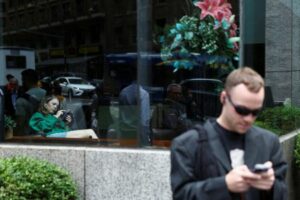FILE PHOTO: People use mobile phones in New York City, U.S., June 21, 2023. REUTERS/Amr Alfiky/File Photo