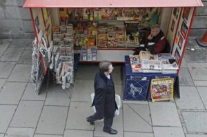 Imagen de archivo de una persona pasando frente a un quiosco de prensa en Londres, Reino Unido. 22 enero 2011. REUTERS/Luke MacGregor