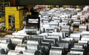 FILE PHOTO: A crane lifts a steel coil at the storage and distribution facility of German steel maker ThyssenKrupp in Duisburg, Germany, November 16, 2023. REUTERS/Wolfgang RattayFile Photo
