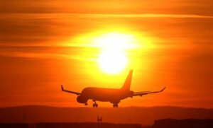 An airplane lands during sunset September 10, 2024 September 10, 2024 FILE PHOTO: An airplane lands during sunset, March 29, 2021. REUTERS/Kai Pfaffenbach/File Photo