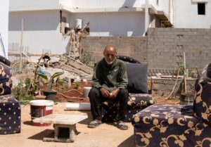 Hassan Kassar, 69, who lost four children and a grandchild in the deadly floods last year, sits in his garden in Derna, Libya, September 9, 2024. REUTERS/Mohamed Emnena