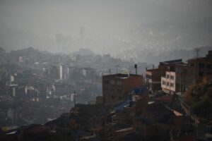 FILE PHOTO: The buildings are enveloped in smoke caused by wildfires in the east of the country, in La Paz, Bolivia August 22, 2024. REUTERS/Claudia Morales/File Photo