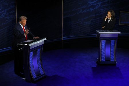11 sep (Reuters) – El martes por la noche, al comenzar el debate de alto nivel en Filadelfia, la vicepresidenta Kamala Harris cruzó el escenario, se movió alrededor de un atril y extendió la mano para saludar.